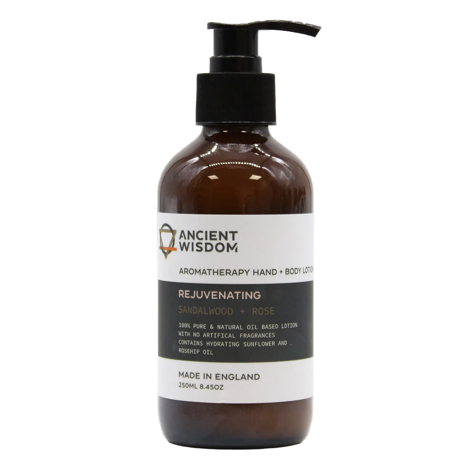 Aromaterapinis rankų ir kūno losjonas – „Jauninamasis“ (Sandalmedis ir Rožė)