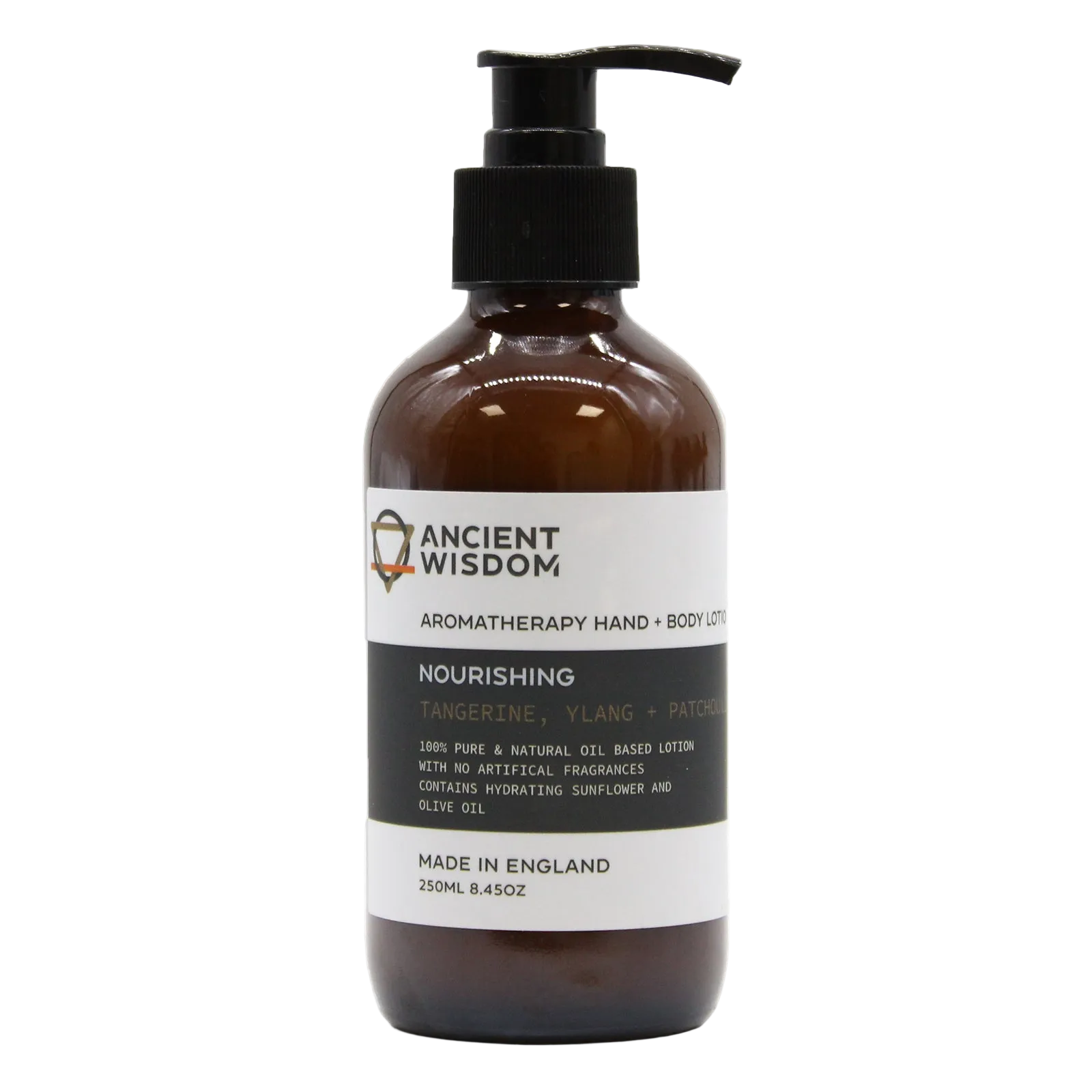 Aromaterapinis rankų ir kūno losjonas – „Maitinantis“ (Mandarinas, Kvapioji Kananga, Pačiulis)
