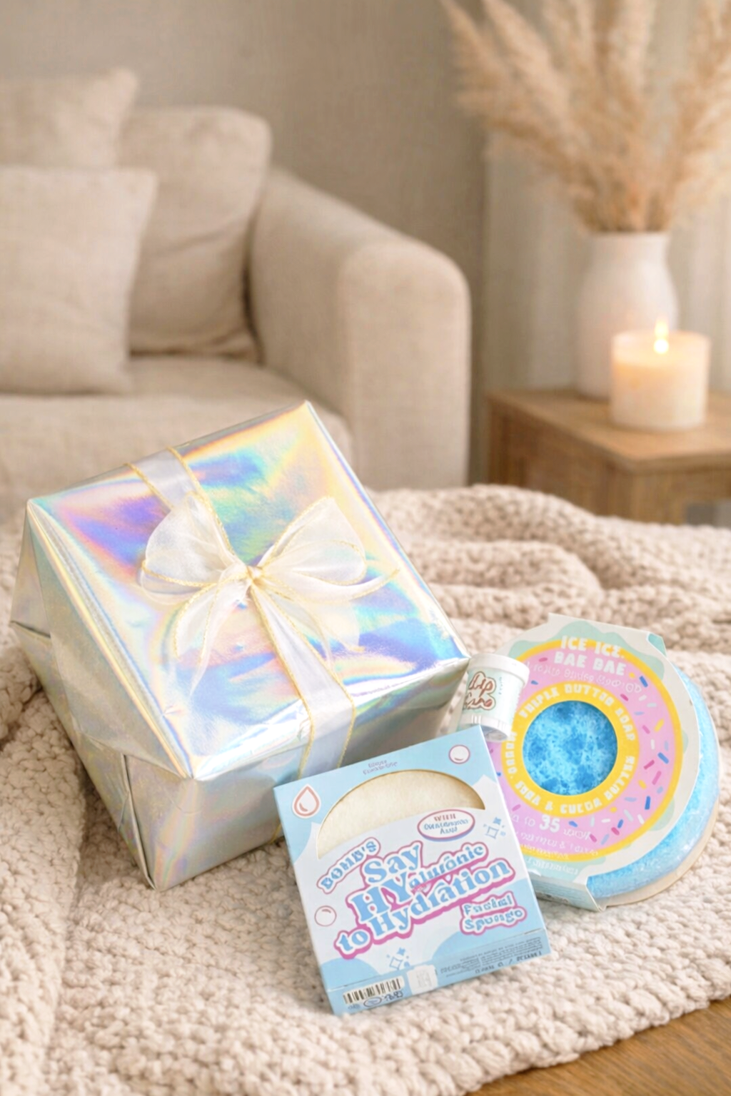 Viskas supakuota į spindinčią holografinę dėžutę su kaspinu – paruošta dovanoti be jokių rūpesčių! 💝
