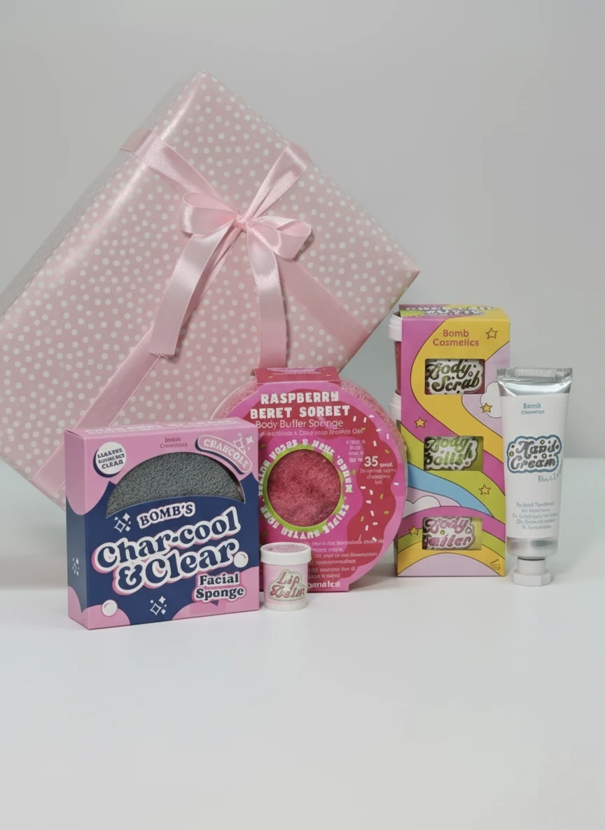 Šis rinkinys – tarsi mažas grožio desertas, pripildytas saldžių kvapų ir odą lepinančių priemonių. Veido kempinėlė su anglimi švelniai valo ir atgaivina odą, avietinė kūno šveitimo kempinė suteikia vaisinį švelnumą, o „Black Jasmine“ rankų kremas pasirūpina drėgme žiemos dienomis. Lūpų balzamas „Strawberry Daiquiri“ ir „Cocktail Cutie“ mini rinkinys užbaigia šią šventinę akimirką saldžiu aromatu bei žaismingu prisilietimu.
