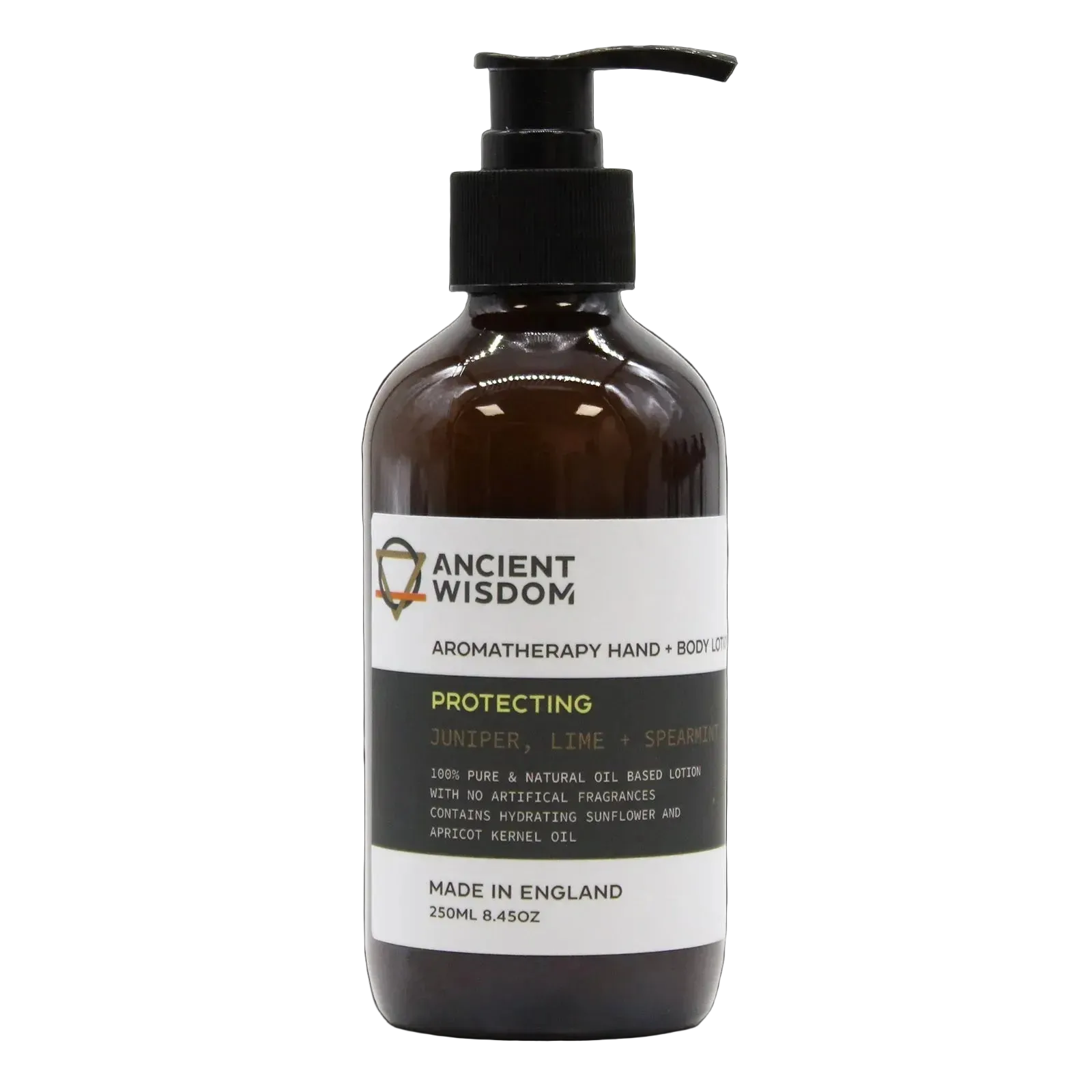 Aromaterapinis rankų ir kūno losjonas – „Apsauga“ (Kadagys, Laimas, Šaltmėtė)